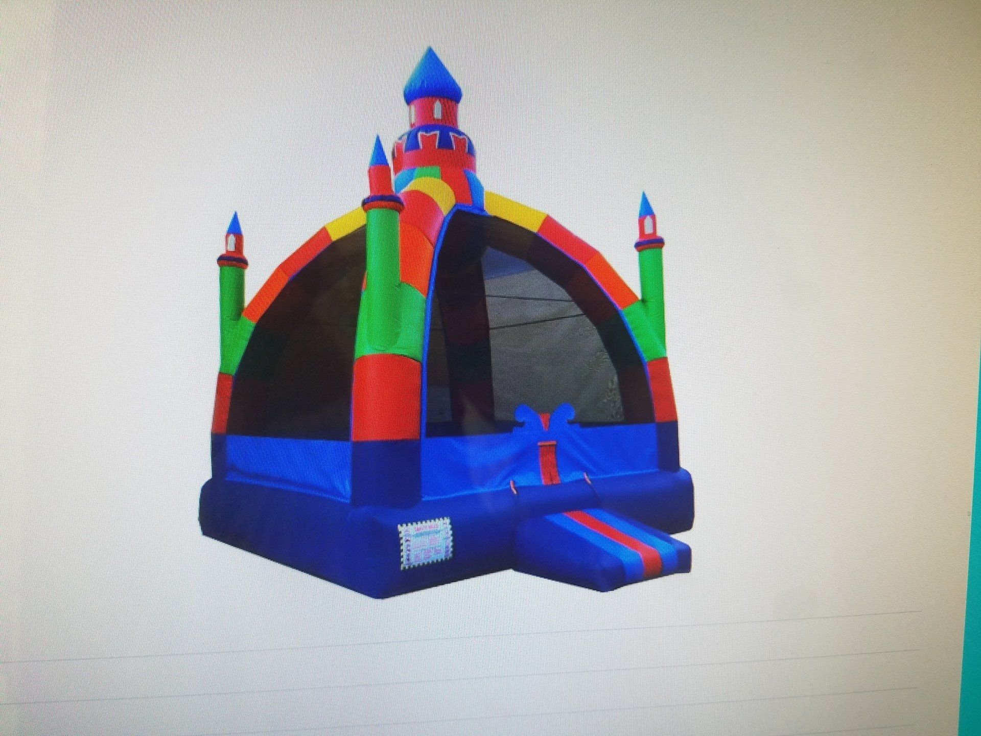 What a beautiful unit for your boy or girl next party!! This multi color dome shape bounce house is guaranteed to stand out, with it's outside basketball hoop and large open sides gives family and friends more time to watch the children bounce and play for hours. rent it today for only $135.00