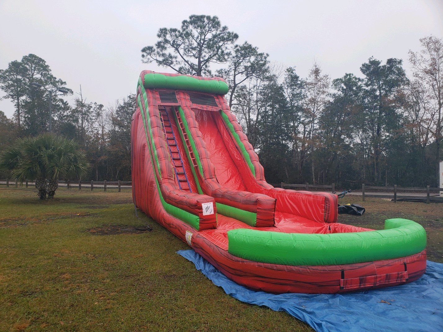 This 22 feet beautiful water slide will be a big hit for both kids and adults .